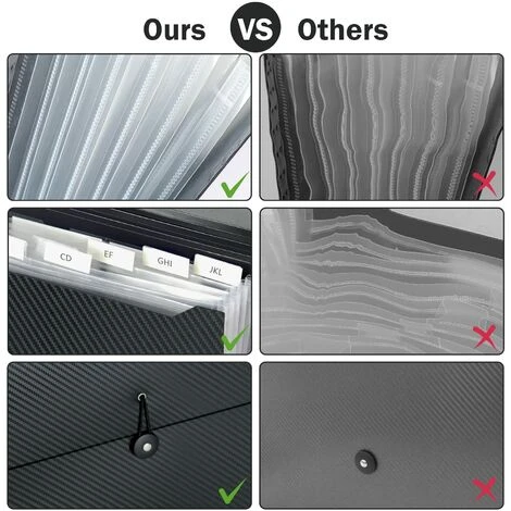 Dotato di 7 tasche trasparenti espandibili per la massima archiviazione dei file e dotato di schede personalizzabili, puoi etichettare ogni file e trovarlo facilmente.