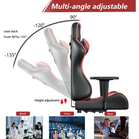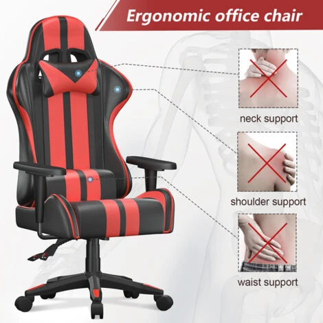 Design ergonomico per i giocatori – L’esclusiva funzione di reclinazione ad ampio angolo della sedia da gioco può essere regolata tra 90° e 155° in base alle proprie esigenze. La sedia da scrivania è dotata di un cuscino per la testa e di un supporto lombare altamente flessibili, che creano un supporto e una vestibilità personalizzati – regolabili e rimovibili, si adattano alla curva della colonna vertebrale lombare, alleviando i dolori alla schiena dovuti alla sedentarietà.