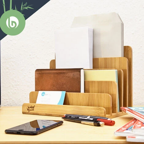 Il raccoglitore per lettere Blumfeldt non è solo un ottimo organizzatore, ma dà alla tua scrivania o scaffale un tocco moderno e naturale. Il bambù levigato è molto facile da pulire. Si può anche usare come portagiornalio per altri usi. Decidi tu stesso se lo vuoi mettere sdraiato o in piedi sulla scrivania, sulla cassettiera o nello scaffale.