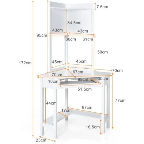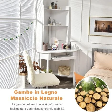 - Design Compatto e Salvaspazio: Rispetto ai normali tavoli per computer, la nostra scrivania si può collocare in un angolo e massimizza l’uso dello spazio nella stanza. La dimensione compatta massimizza l’uso dello spazio in casa e in ufficio così potrai lavorare, scrivere, truccarti e dedicarti ad altre attività.