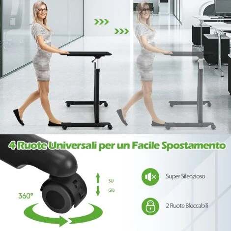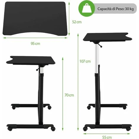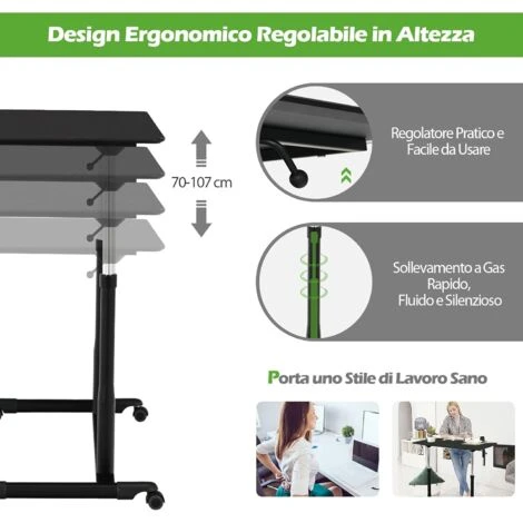 - Facile da conservare e trasportare : Le 4 ruote universali, di cui 2 con freno, ti permettono di spostare la scrivania garantendone la stabilità e proteggendo il pavimento. Compatta e regolabile in altezza, occupa poco spazio.