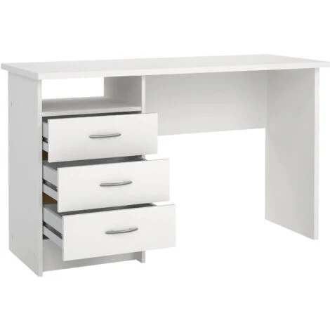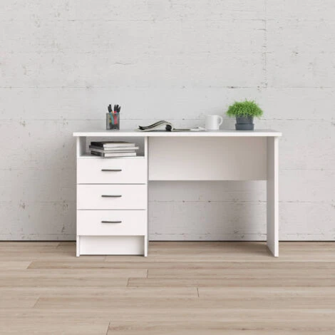 I tre cassetti permettono di avere sempre a portata di mano tutto il necessario al lavoro e il vano che si crea tra i cassetti e il piano della scrivania è perfetto per riporre per esempio il computer.