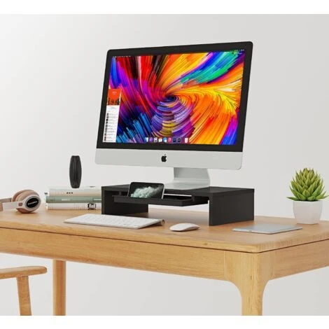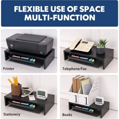 【MULTIFUNZIONALE】 Il supporto per il monitor può sostenere il monitor del PC, Laptop. Con il cassetto, è possibile memorizzare le carte e altre forniture per ufficio per fornire uno spazio di lavoro più spazioso e ordinato.
