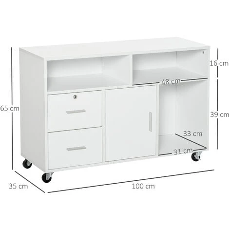 Tieni in ordine e al sicuro documenti e materiale d’ufficio con il mobile multiuso HOMCOM. Questo mobile porta stampante è dotato di cassetti, ripiani e armadietto, per riporre in modo organizzato tutto ciò che ti serve. Lo stile minimalista si abbina a ogni arredo, in casa e in ufficio. La sua versatilità rende questo mobiletto basso adatto per diversi usi e in differenti ambienti. Solido, resistente e sicuro, ti aiuterà a tenere tutto in ordine!