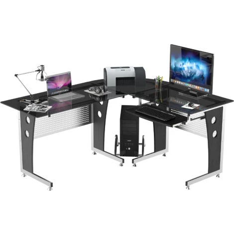 • Ampia scrivania ad angolo per computer con un ripiano estraibile liscio per tastiera;