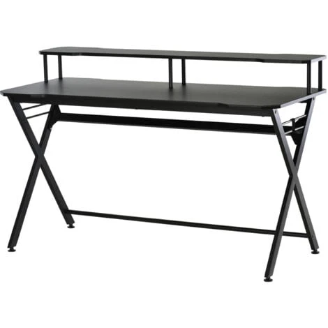 Ecco una scrivania pratica e funzionale per tutti gli amanti dei videogiochi! È dotata di un piano rialzato su cui puoi sistemare uno o più monitor, e mantenere una postura corretta durante le ore passate al computer. Il piano di lavoro è ampio e versatile: puoi usarlo per posizionare il PC, il mouse e la tastiera. Inoltre, include un pratico gancio laterale per appoggiare le cuffie e averle sempre a portata di mano. La superficie è costruita in MDF e le gambe sono in metallo per offrirti il massimo della stabilità.