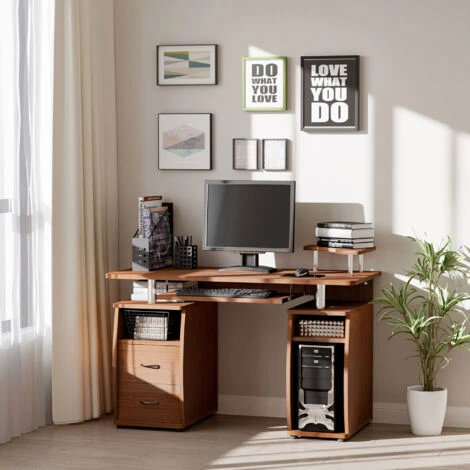 La scrivania per computer HOMCOM è la postazione di lavoro perfetta per la casa e l’ufficio. È dotata di una mensola rialzata, una mensola estraibile per posizionare la stampante o scanner, una mensola estraibile per tastiera e 2 ampi cassetti. Il suo design minimalista la rende perfetta per abbinarsi a ogni arredamento, puoi usarla come scrivania da ufficio, in camera o nello studio. Compatta e funzionale, questa scrivania moderna è ciò che ti serve.