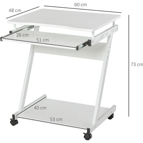 Hai bisogno di un tavolo per sistemare il tuo PC, e lavorare in totale comfort? Questo tavolo portacomputer è perfetto! Grazie alle sue dimensioni compatte puoi usarlo sia in ufficio che a casa. Inoltre, ha 4 ruote per spostarlo comodamente, un ripiano tastiera a scomparsa e una mensola inferiore per sistemare la stampante o la CPU se hai un computer fisso.