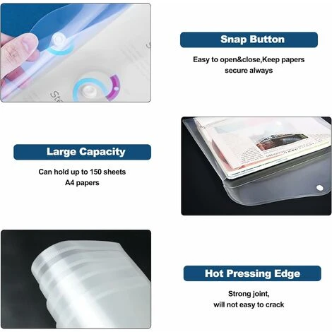 - Grande capacità : Le nostre cartelline in plastica trasparente misurano 33,2 x 23,3 cm, più grandi della carta A4 e possono contenere fino a 150 fogli di carta. Leggero e portatile per un facile trasporto e conservazione.