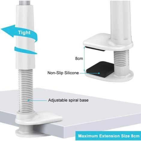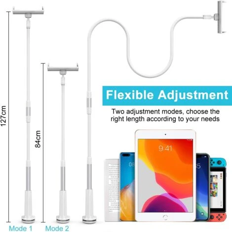 - Eccellente stabilità: l’impugnatura con ganasce in gel di silice offre una migliore protezione dai graffi per dispositivi e articolazioni, senza graffiare il dispositivo. Con il braccio a collo d’oca regolabile lungo 120 cm e la rotazione di 360 gradi, il tuo cellulare o tablet rimane sempre alla giusta distanza e con la giusta angolazione.