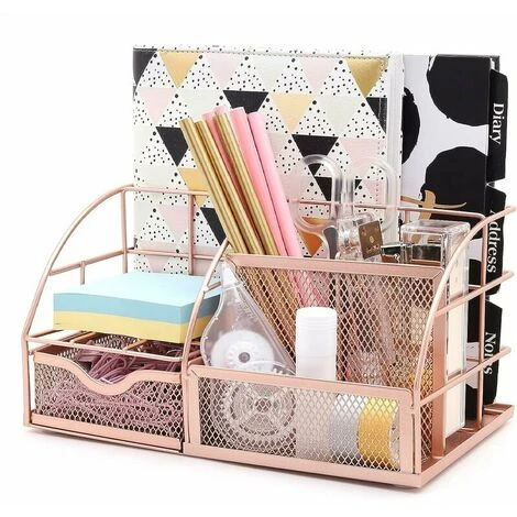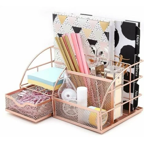 - Organizer da scrivania in metallo Exerz con sette scomparti, incluso un cassetto estraibile;