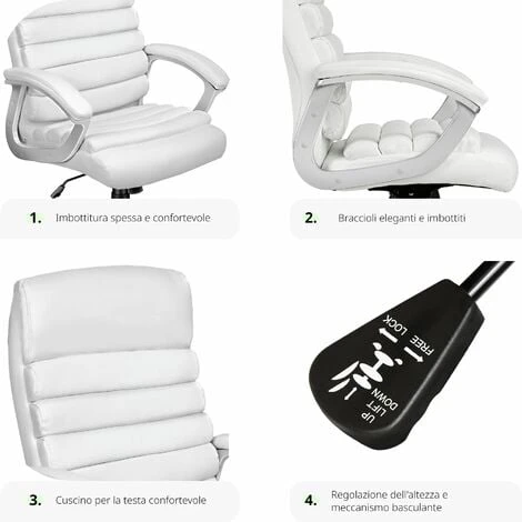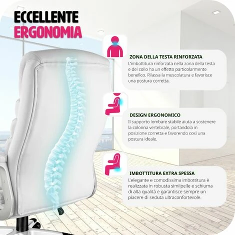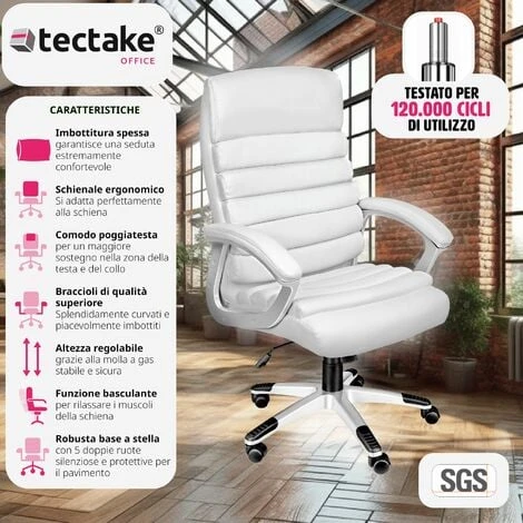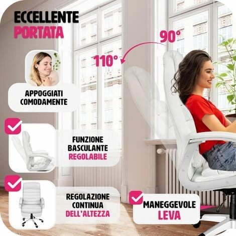 - materiali: struttura in acciaio, componenti in plastica, imbottitura in 100% poliestere, pelle sintetica 100% poliuretano.