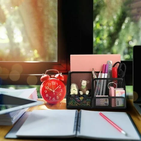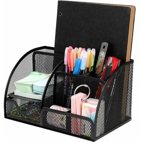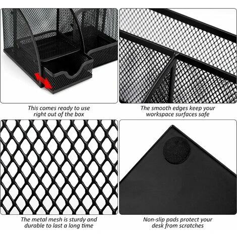 Tieni in ordine la tua scrivania: Stanco di cercare articoli di cancelleria in un ufficio disordinato? Non solo questo contenitore da scrivania con molto spazio di archiviazione può aiutarti a riporre articoli di cancelleria e forniture, ma può anche semplificarne l’organizzazione per un rapido accesso!Mensola da scrivania salvaspazio: la mensola da scrivania in rete ha sei scomparti e un cassetto estraibile cassetto per lo smistamento e la conservazione. Può organizzare penne/matite, telecomandi, telefoni cellulari, schede, cavi USB, laptop e molti altri piccoli oggetti.Fornire forniture e decorazioni per ufficio migliori: La conception unique en treillis métallique et la finition noire élégante peuvent être facilement combinées avec autres fournitures de bureau pour donner à vos fournitures de bureau une touche moderne.La conception antidérapante sur le fond maintient appareil en place et évite parfaitement les rayures sur la table ou la tavola. Il design cavo nel complesso mantiene ventilato e completamente asciutto e la scatola di immagazzinaggio non raccoglie la polvere così facilmente.Robusto e durevole: Realizzato in materiale metallico resistente e durevole, non facile da rompere e deformare, resistente e durevole. Il rivestimento epossidico nero ecologico è inodore e non sbiadisce, prolungando efficacemente la durata. Realizzato in tessuto d’acciaio resistente e antigraffio con bordi in metallo rinforzato. I cassetti delle nostre scatole portaoggetti da scrivania si estraggono facilmente e possono essere facilmente estratti per creare spazio di archiviazione espandibile.Ci sono 4 cuscinetti antiscivolo sul fondo per migliorare la stabilità e proteggere la tua scrivania.Grazie alle sue dimensioni compatte, questo desktop manager può facilmente posizionabile ovunque.Il telaio in rete consente di visualizzare immediatamente il contenuto di ogni scomparto.Puoi proteggere i bordi arrotondati in metallo dai graffi.Il regalo perfetto per bambini, famiglia, amici o partner commerciali.La consegna del prodotto include solo: 1 scatola di immagazzinaggio nera Quantità di spedizione: un pezzo