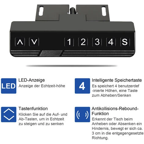 【Sicurezza intelligente】: il pannello di controllo ha uno schermo a LED e i pulsanti di memoria intelligenti memorizzano 4 altezze definite dall’utente, un clic può raggiungere l’altezza desiderata.Funzione di rimbalzo anticollisione intelligente, quando rileva ostacoli durante il sollevamento/abbassamento, la scrivania guiderà per circa 3 cm nella direzione opposta. Con la protezione contro le scosse elettriche, evita i pericoli nascosti.