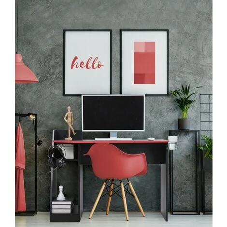 – SPECIFICHE: Misure totali: H 85 cm x L 110 cm x P 50 cm – Misure ripiano: L 109 x P 50 cm – Misure vano case pc: H 48 x L 25 x P 45 cm – Peso supportato dal ripiano: 50 kg – Colore: Nero, Rosso – Materiale: Truciolare melanimico, Acciaio – Da Montare. Istruzioni e kit di montaggio inclusi – Cod. RE6773