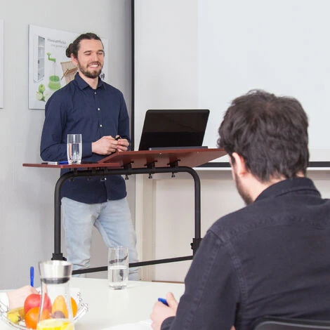 – Come tavolo per computer portatile, tavolino o leggio per conferenze