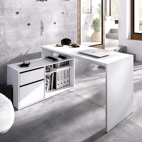 Scrivania ufficio angolare moderna 139x92cm bianco opaco Teddy