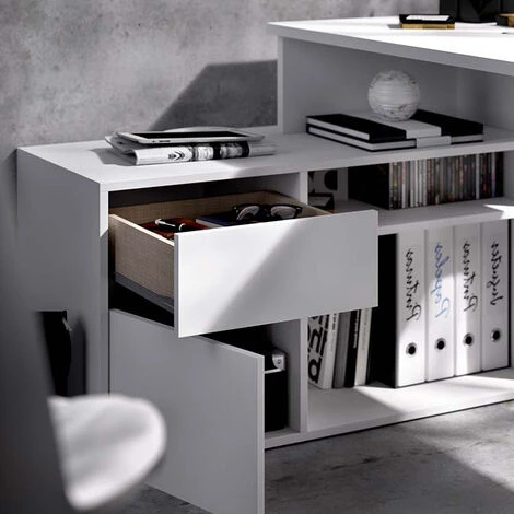 Pratica e funzionale, è dotata di: un’ampia superficie di lavoro, due vani a giorno, un cassetto ed un’anta, spazio perfetto per riporre tutti i documenti.