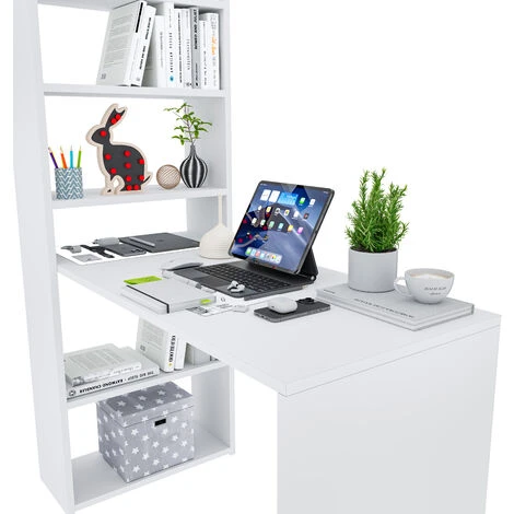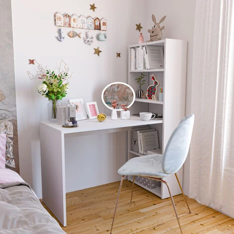 La scrivania Kirkensen e la sua libreria, sono montati insieme ed il ripiano è reversibile, quindi puoi montarlo sia a destra che a sinistra, per adattarla al meglio al tuo stile.La libreria laterale include 5 diversi vani, in modo che voi o i vostri bambini potrete conservare fatture, libri, riviste, fumetti, scatole o persino usarli per riporre degli oggetti decorativi.