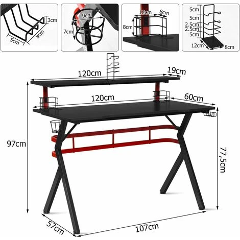 La nostra scrivania da gaming è la scelta perfetta per giocare ai videogiochi! Realizzata con una struttura di metallo resistente, è molto stabile e regge grandi capacità di peso. La superficie ampia con la mensola per il monitor permette di avere un grande spazio per tutte le attrezzature da gaming come tastiera, bicchiere, computer e riviste. Con un porta bicchiere, 2 supporti audio, un gancio per cuffie, una mensola per videogiochi e 2 porta cavi, la scrivania ti fa avere tutto il necessario a portata di mano. La struttura ergonomica e la dimensione ti offrono un’esperienza di gioco molto comoda senza stancarti. Inizia a giocare comodamente con questa scrivania!