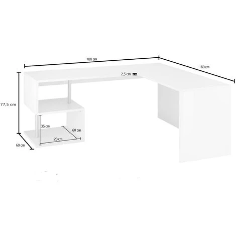 La scrivania ha un design innovativo. È priva di cassetti che sono sostituiti da una gamba a forma di esse che crea due comodi piani a giorno per raccogliere oggetti e documenti per Il lavoro. È pratica e comoda.