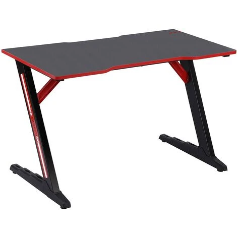 Realizzata con un solido telaio in metallo di altissima qualità verniciato a polvere in un bellissimo colore nero con dettagli in colore rosso, fornita di piano in legno MDF decorato con una bellissima texture fibra di carbonio che rende questa scrivania davvero unica e particolare.