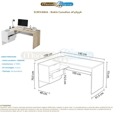 Il tavolo scrivania da ufficio e’ un mobile da ufficio ispirato al design nordico. Ha una struttura in melaminico di alta qualita’, con interessanti finiture in bianco artik e rovere canadese. E’ un mobile resistente e durevole ma anche reversibile, poiché la cassettiera può essere montata su entrambi i lati come meglio si adatta alle tue esigenze. La cassettiera presenta 3 cassetti non sfoderabili con guide in metallo e maniglie in alluminio laccato bianco. Include anche un foro aggiuntivo in un angolo che amplia le possibilità di archiviazione. E’ destinato all’ufficio ma può essere usato anche a casa o nello studio.