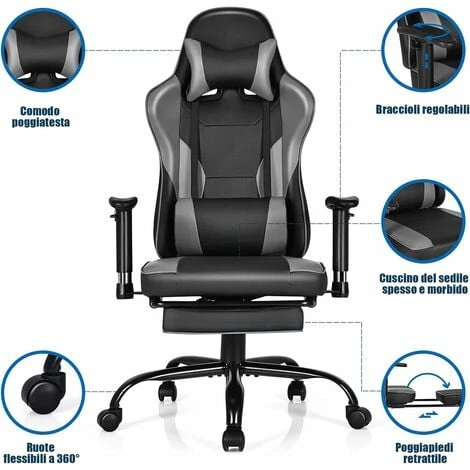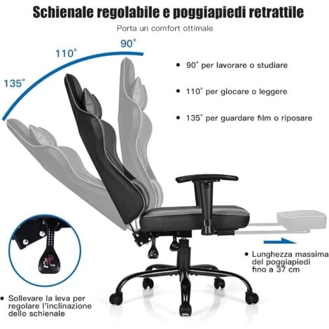 Sedia in Stile Gara Multiuso: La sedia girevole multifunzionale è ideale per giocare ai videogiochi, guardare video, fare un riposino, lavorare o svolgere altre attività. Si può usare in vari posti quali camera da letto, salone, sala di ricevimento, sala riunioni, ufficio, ecc.