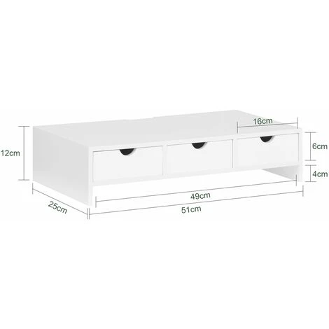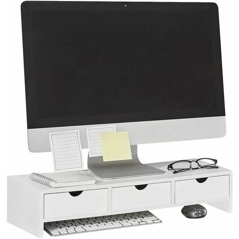 Il supporto per monitor del computer è dotato di 3 cassetti nasconde abilmente il disordine. E infilare la tastiera e il mouse sotto per aumentare lo spazio sulla scrivania. Il pratico foro incorporato di questo supporto organizer da scrivania mantiene i cavi fuori strada e organizzati.