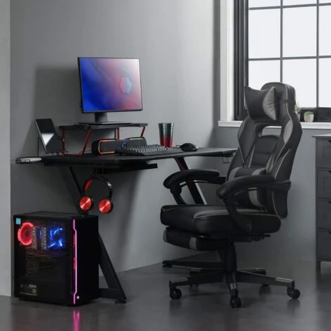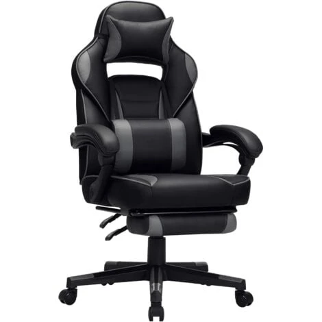 Songmics Sedia Da Ufficio, Poltrona Racing Ergonomica, Con Poggiapiedi Telescopico, Schienale Regolabile, Poggiatesta E Supporto Lombare, Capacità Di Carico Di 150 Kg, Nero E Grigio