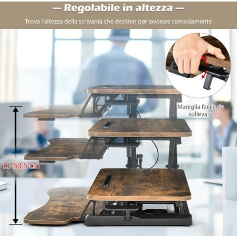 Ambiente di lavoro confortevole: Se ti siedi e lavori a lungo, ti senti a disagio? Puoi provare a lavorare in piedi! Il nostro tavolino può essere posizionato sulla scrivania e l’altezza può essere regolata da 11 cm a 50,5 cm ed è ottimo per lavorare.