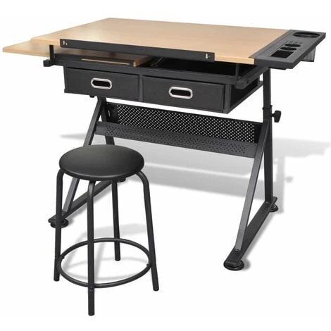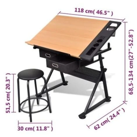 Questo tavolo di alta qualità inclinabile ti ofre spazio generoso di lavoro. Con la sua doppia faccia di lavoro, il nostro tavolo è adatto specialmente per artigiani. Il computer portatile e lo spazio di disegno possolo essere usati allo stesso tempo. L’altezza regolabile ti aiuta a lavorare in diverse posizioni, con l’aiuto del femafogli che ti tiene i fogli sul tavolo. Il vassoio laterale ti tiene le cose utili a portata di mano. Due cassetti grandi servono come spazio di deposito per penne ed altri strumenti per disegnare. Lo sgabello incluso ha un’imbottitura spessa e ti aiuta a sederti comodamente mentre lavori.