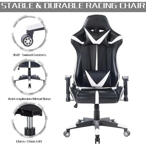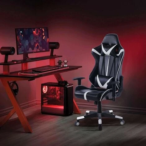 - Versatile: Questa sedia per pc è. dotata di meccanismo basculante e schienale reclinabile (90°.-155°.). L’altezza del sedile è. regolabile (47-55cm) tramite la leva sottostante. per giocare e lavorare in tutto comfort. inoltre. grazie allo schienale regolabile e all&rsquo.accattivante combinazione di colori. può. essere utilizzata per più. scopi: da 90°. a 100°. come sedia gaming o sedia da ufficio. da 135°. a 155°. come sedia relax. È. ideale per ufficio. studio. camera da letto. ecc.