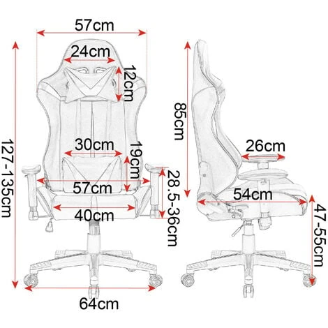 - Versatile: Questa sedia per pc è. dotata di meccanismo basculante e schienale reclinabile (90°.-155°.). L’altezza del sedile è. regolabile (47-55cm) tramite la leva sottostante. per giocare e lavorare in tutto comfort. inoltre. grazie allo schienale regolabile e all&rsquo.accattivante combinazione di colori. può. essere utilizzata per più. scopi: da 90°. a 100°. come sedia gaming o sedia da ufficio. da 135°. a 155°. come sedia relax. È. ideale per ufficio. studio. camera da letto. ecc.