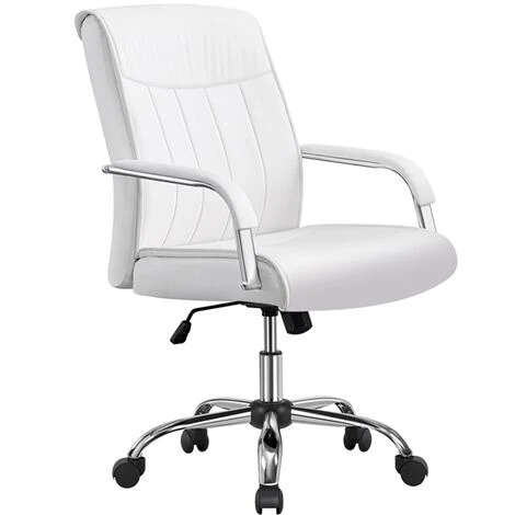 ✔️ Struttura Robusta: questa sedia da ufficio con schienale alto è costituita da un rivestimento in ecopelle di alta qualità, compensato resistente e una robusta base in ferro cromato per offrire un’esperienza di primo livello. Con una capacità di carico di 136 kg, questa sedia girevole è adatta a qualsiasi utente.