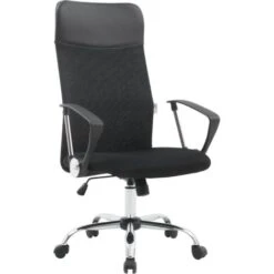 Poltrona da ufficio elegante ed ergonomica realizzata in tessuto traforato traspirante con altri dettagli in ecopelle. Questa sedia presidenziale è ideale per l’ufficio, per lo studio o per la casa. E’ dotata di un pistone a gas in acciaio cromato che permette di regolarne l’altezza tramite leva. Il tessuto perfettamente rifinito di questa sedia da ufficio nera, risulta morbida al tatto, resistente all’usura, di facile pulizia e soprattutto traspirante. Comodissima, ergonomica ed avvolgente, risulterà un vero piacere lavorare al pc, in ufficio o in casa senza accusare, a fine giornata, fastidiosi dolori alla schiena. Il supporto lombare permetterà di assumere una postare corretta durante il tempo di utilizzo della poltrona. Direzionale e girevole, dunque rotante a 360° grazie alla piedistallo cromato con 5 ruote ideali per tappeti e superfici morbide.